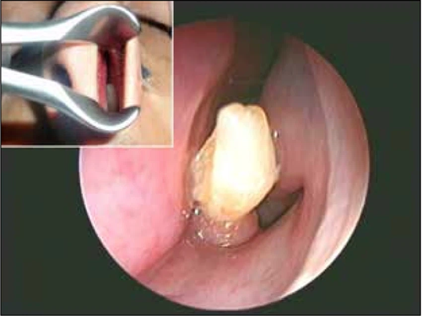 وعند الكشف تفاجأ الطبيب بوجود عظمة طويلة داخل الأنف أشبه بالـ "سن"؛ تتسبب بتكرار نزيف الأنف مرات عدة شهريا لدى الشاب.