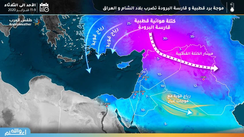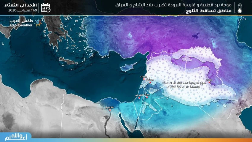ArabiaWeather- A record breaking cold is expected to sweep across the middle east this week, record cold temperature as an arctic blast moves south across eastern Europe and the black .sea towards the middle east and the eastern Mediterranean