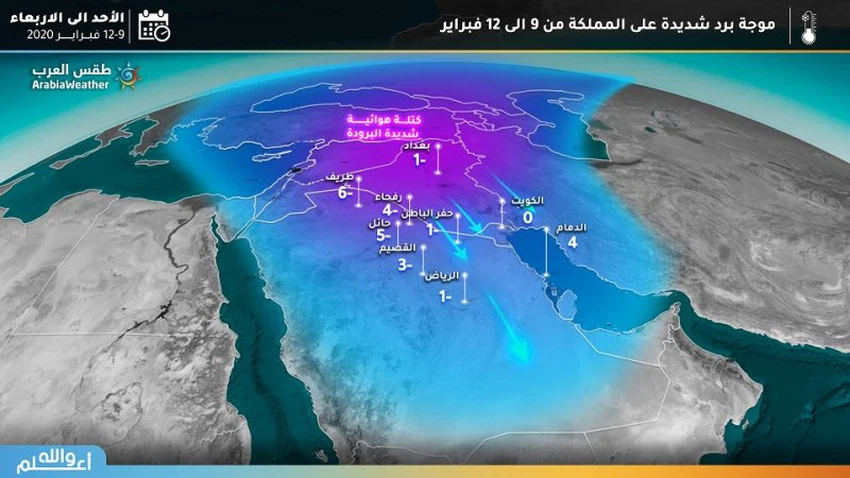 Weather of Arabia - Sinan Khalaf - The weather forecast staff continues to monitor the weather , around the clock, with the latest developments and developments in the impulse of the polar mass towards the Kingdom , which are exceptional in terms of extreme cold that will cast a shadow on the Kingdom during the second half of this week , which will decrease with it Temperatures are at great levels, especially in Turaif, Hail and Rafha