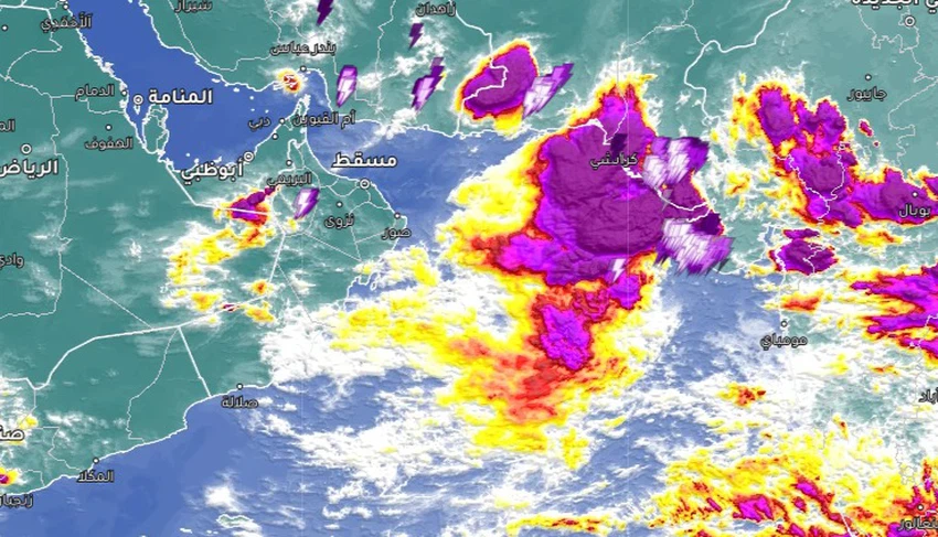In the details, satellite images are currently monitoring a tropical disturbance currently centered along the coasts of western India and Pakistan, where a large mass of cumulonimbus thunderclouds appears, directly affecting the coastal parts with heavy rains and floods, with expectations that the impact of this weather system and the accompanying thunderclouds will continue. Rain in the area until Friday.
