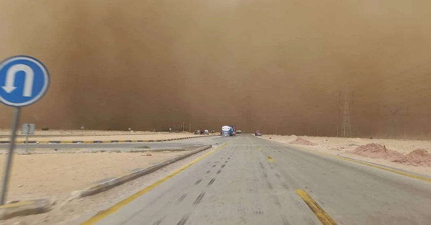 Weather of Arabia - A strong sandstorm blew on Ain Sukhna in the Republic of Egypt on Saturday 19-02-2022 and led to a rapid deterioration of the horizontal visibility, as thick dust spread to cover various aspects of the region.
