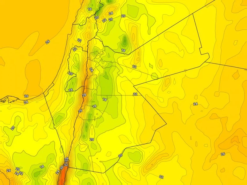 Based on the above, it is expected, God willing, that temperatures will begin to drop slightly starting on Friday, while continuing despite the drop being about 4-6 degrees Celsius higher than their average. A relatively hot atmosphere will prevail over the mountain highlands, suitable for trips in those areas, perhaps the most prominent of which are forest and green areas such as Ajloun. Jerash, Salt, and others. As for the rest of the regions, the weather is hot, especially in the Jordan Valley, the Dead Sea, and Aqaba, where temperatures are in the early 40s, and the winds are moderate northwesterly, active in the afternoon and evening hours, reducing the intensity of the feeling of heat, especially for residents of the mountain highlands.