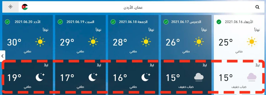 Arab weather - Similar to the previous nights in Jordan, it is expected that the weather will continue to be cold tonight and additionally than yesterday, when relatively cold weather prevails in all regions of the Kingdom and the winds are northwesterly moderate in speed.