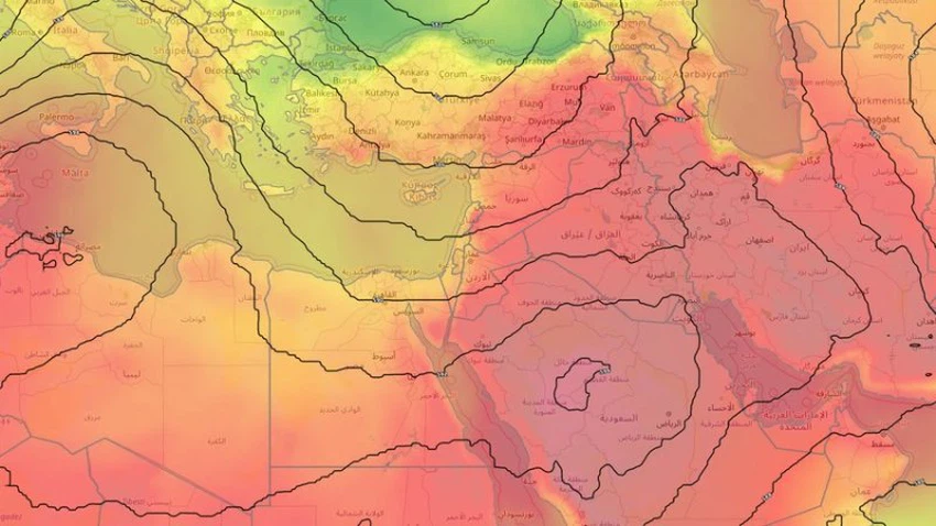 According to medium-term weather maps, it is not expected that there will be a significant change in the prevailing weather systems in the region in the coming days, and thus the continuation of the relatively hot weather to the hot that prevails in general in various regions, and the reason for the rise in temperatures is due to the construction of an air rise in the upper layers of the The atmosphere, where this new distribution in the atmospheric systems provides high chances of rushing relatively hot air masses from the desert of the Arabian Peninsula towards the region.