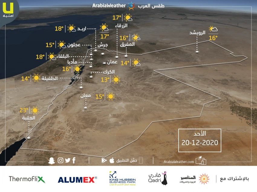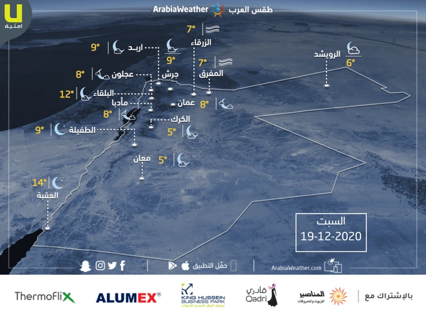 Tomorrow ((Sunday)) || The temperatures are around their normal rates for such a time of the year, but the concrete temperatures are low, and the weather is generally cold and sunny in most regions, with the appearance of some scattered clouds in the far east of the Kingdom.