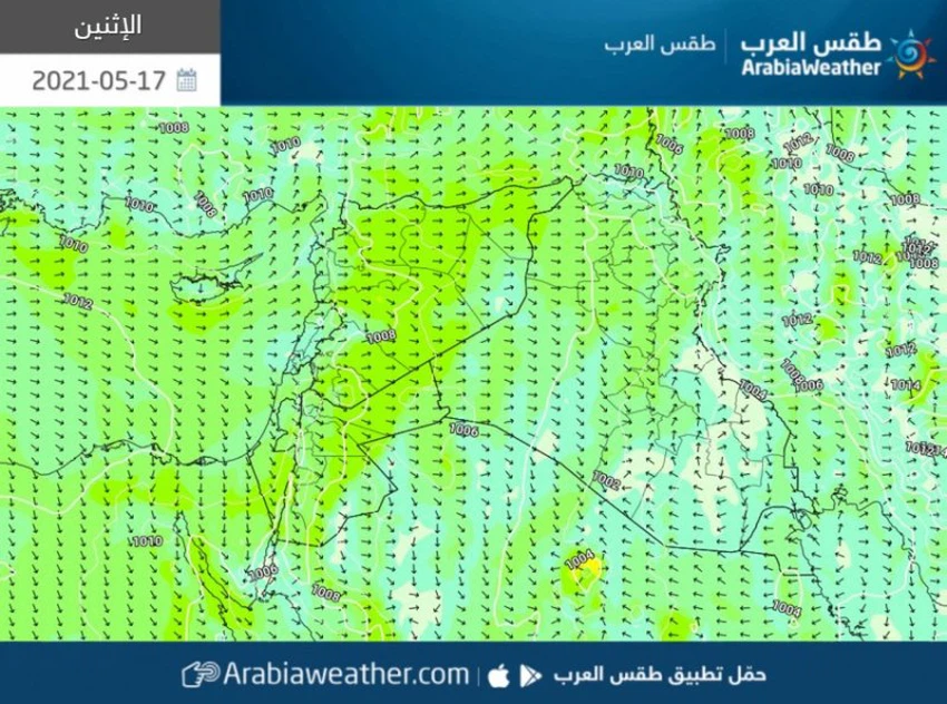Some clouds continue to appear at medium and high altitudes, and the winds will be southwesterly to northwesterly moderate, and are active in the afternoon and work to raise dust in the Syrian and Jordanian desert.
