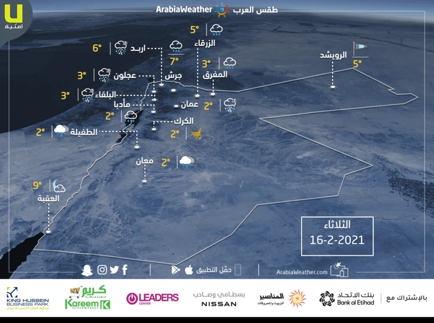 More extremely cold polar air continues to flow towards the eastern region of the Mediterranean, which leads to the deepening of the air depression over the basin of the island of Cyprus, and the kingdom crosses the first air fronts associated with it gradually during the night, and there is a sharp and rapid decrease in temperatures in most regions.