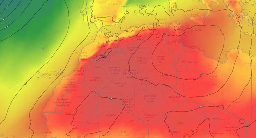Arab Weather - The results of the analysis of the latest weather maps developed by Arab Weather are constantly expected on the hot mass on Algeria during the next week, as a result of the continued control of a strong and stubborn air altitude in all layers of the atmosphere over the region, to prevail in a hot, exhausting and long atmosphere amid indications of the continued impact of these Hot weather throughout the week at least and varying intensity from day to day.