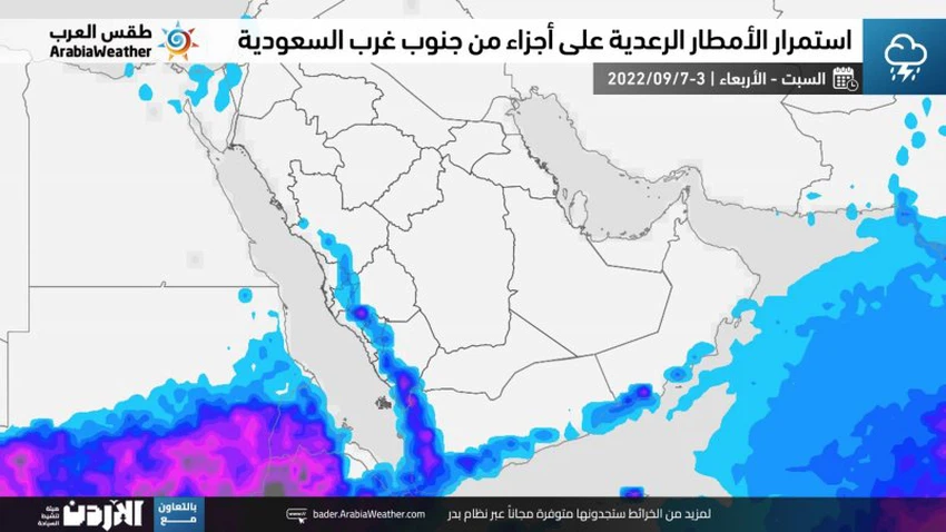 It is expected that the weather will continue to be hot to very hot in most regions of the Kingdom, except for the highlands, during the current week, with a gradual decline in the heat of the northwestern regions. Chances of convective clouds will continue in the afternoon hours on parts of the heights of Jazan, Asir, Al Baha and Makkah, all the way to the south of Medina, accompanied by thunderstorms of rain, which are heavy in some limited neighborhoods.