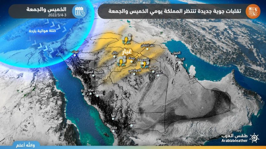 Saudi Arabia | Arab weather warns of strong winds and possible dust concentrated in the northern regions on Thursday