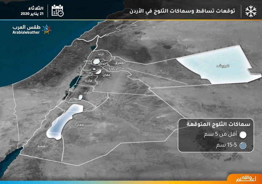 Weather of Arabia - The Kingdom is affected from Monday morning until Wednesday morning, with an air depression classified as second degree according to the scale of severity of the depressions, accompanied by a very cold and arctic air mass that rushes to the region, specifically the Badia Al-Sham region. And the impact of this low air is associated with rain and snow, and remarkably low temperatures.