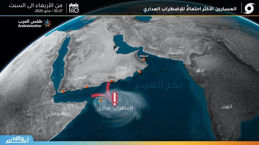 The orbital state over the waters of the Arabian Sea is still classified as an orbital strike with expectations that it will develop into an orbital air depression within the next 48 hours on its way north towards the coasts of Salalah, Rasput and Zalqut Oman, and this is the path most likely according to the totality of numerical models and also the digital outputs of air maps, but There is a second, but less likely, path. The tropical depression moved westward towards the coasts of Yemeni death along with the coasts of the Sultanate of Oman, but this path is considered unlikely or low-probability.