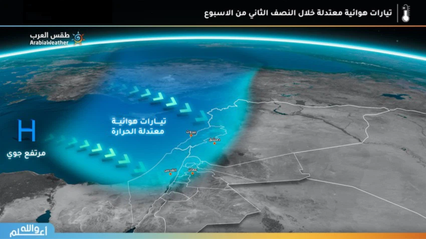 According to medium-range weather maps, it is not expected that there will be a significant change in the air systems during the coming period, as it is expected that the temperate air will continue to flow east of the European continent to the Levant amid the absence of the extension of hot air masses from the Arabian Peninsula towards our region.