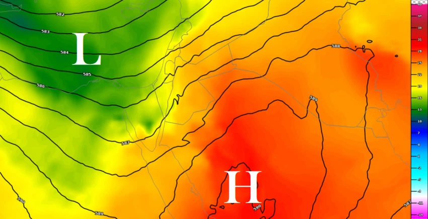 تأتي تلك التوقعات على إثر تمدد منخفض البحر الأحمر نحو تلك المناطق، بالتزامن مع تواجد كتلة هوائية أقل حرارة ومنخفض جوي في طبقات الجو العالية في الحوض الشرقي للبحر الأبيض المتوسط.