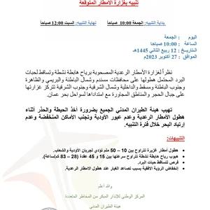 The National Multi-Hazards Early Warning Center and the Civil Aviation Authority issued an alert for the heavy rain expected today, Friday, and the following is what it said: