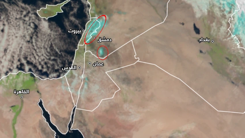 Arab Weather - The newly captured natural satellite images, which are operated by the Arab Regional Weather Center, have clearly monitored snow, covering the mountainous peaks of the Levant.