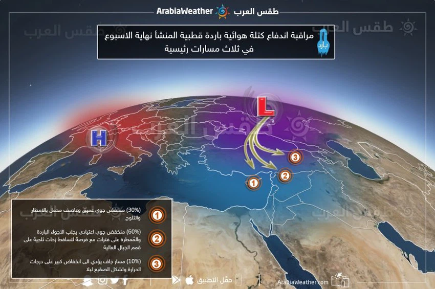 In this news, the Arab weather clarifies the truth of the matter, what are the possibilities / possible scenarios, and the expected weather condition during the current weekend and early next week, God willing.