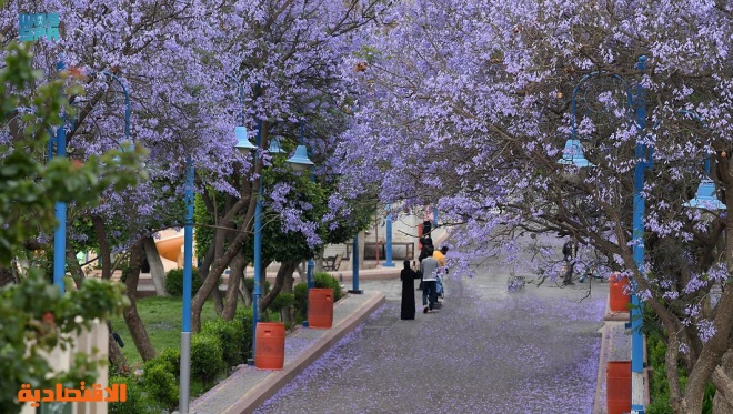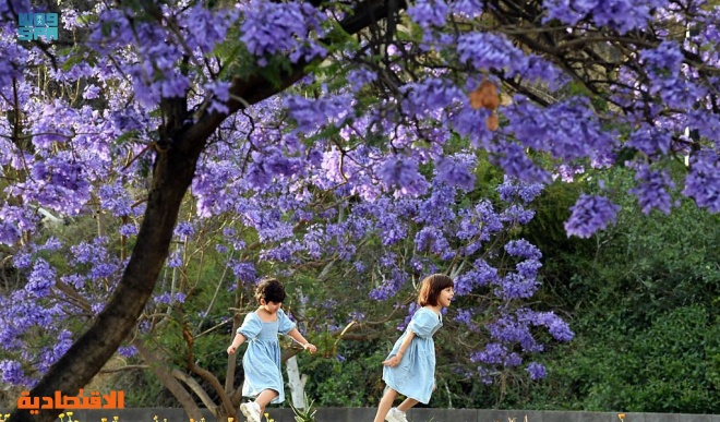 Weather of Arabia - The residents of the Asir region in Saudi Arabia are waiting every year for the jacaranda trees to bloom in their bright purple colors to enjoy their beauty, as hundreds of families gather around these trees for a walk in Art Street in the center of Abha city, which is the most prominent "jacaranda" site in the Asir region.