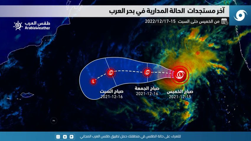 According to the outputs of the computer modeling, it is expected that the deep tropical depression will move to the west during the coming days towards the center of the Arabian Sea, provided that it begins to gradually weaken as a result of the high shear winds, which limits the chances of the situation developing into a tropical storm and acquiring a new name.