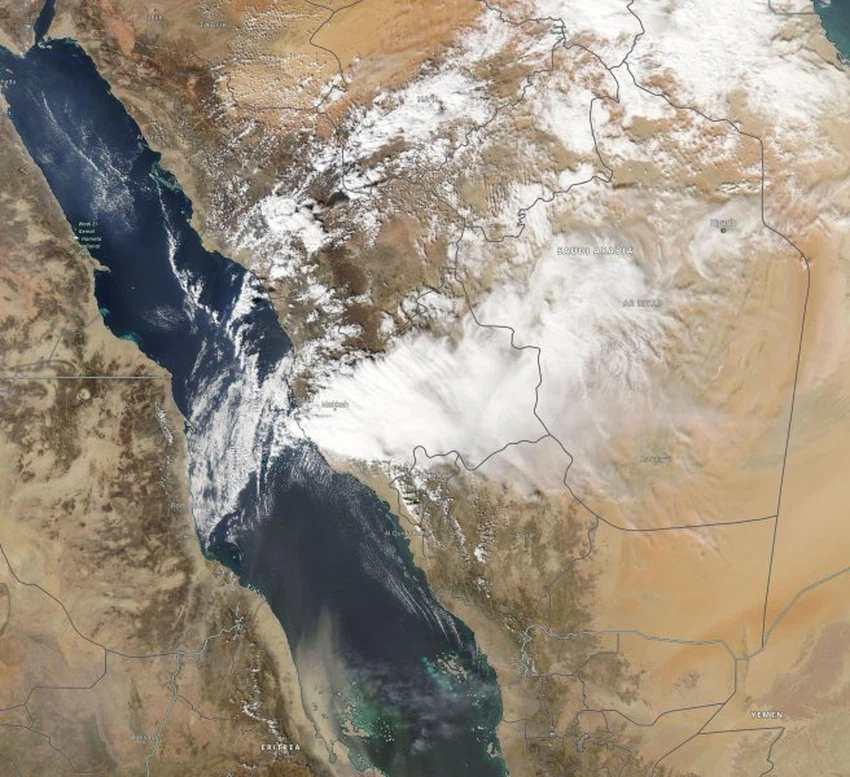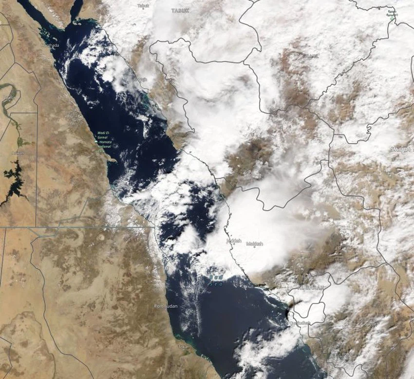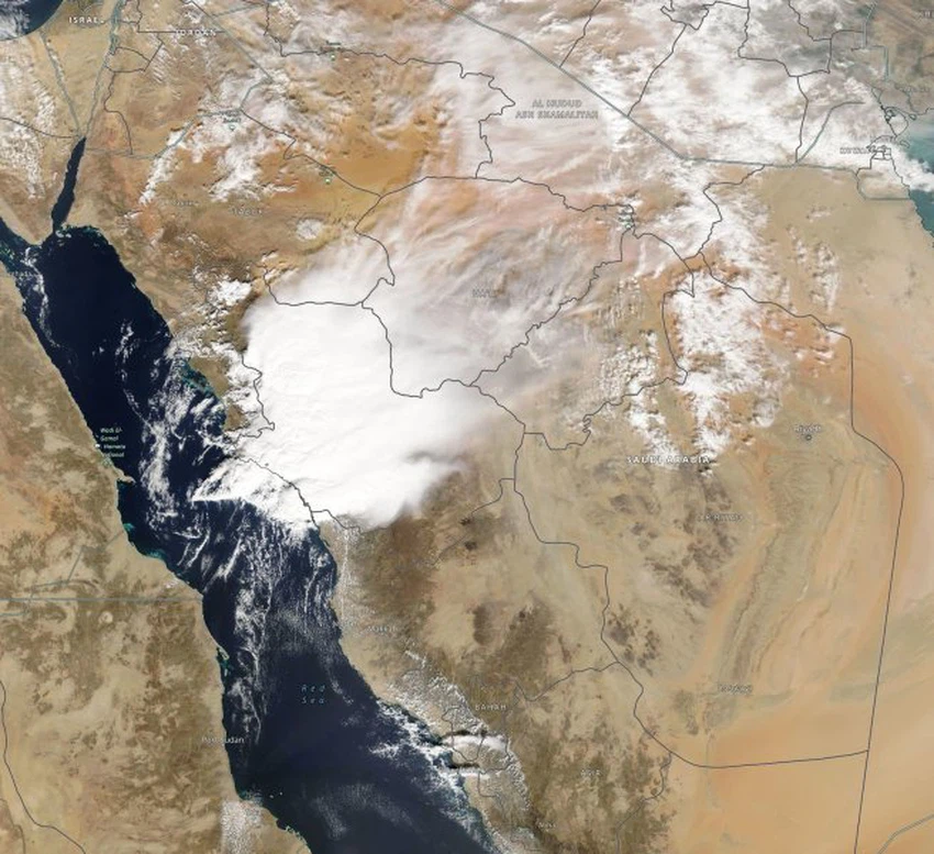 Les côtes de la mer Rouge, en particulier la ville de Djeddah, Médine, La Mecque et les régions avoisinantes ont été affectées, le samedi 11/3/2018, par une forte condition météorologique, représentée par une violente instabilité, qui a provoqué de grandes quantités de cumulus. d'éclater directement de la mer Rouge, et la situation s'est accompagnée d'une grande quantité d'éruption. L'humidité tropicale venant du sud-est de l'Afrique pour rencontrer l'humidité de la mer Rouge, ce qui a provoqué une condition connue sous le nom de "fracture" qui a causé de grandes quantités d'orages et de grêle à tomber, entraînant des inondations et des pluies torrentielles dans la ville de Djeddah.