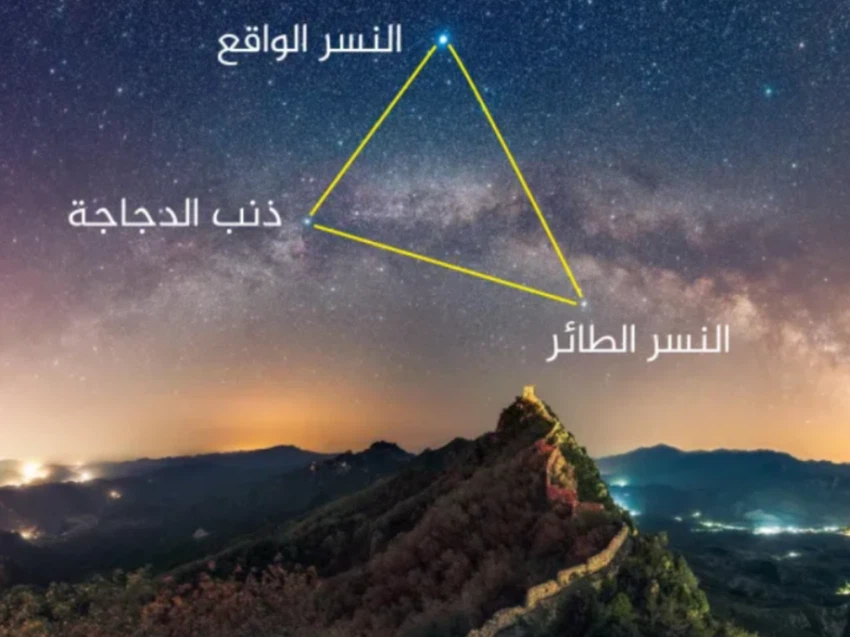 Trois autres étoiles brillantes apparaissent dans le ciel d’été, formant ce que les astronomes appellent le « Triangle d’été ». Ces étoiles sont Véga, Deneb et Altaïr. Le triangle s'élève à l'est après la tombée de la nuit et s'élève à minuit en juillet et août. À travers ce triangle, on peut voir le disque de notre galaxie (la Voie Lactée). Un grand nombre d'amas d'étoiles brillantes, en plus de certains des nuages planétaires les plus célèbres, comme la Nébuleuse de l'Anneau et Messier 27.