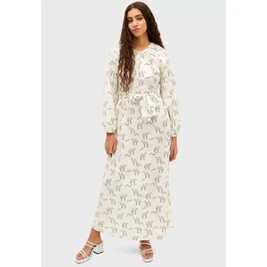 Vêtement d'été pour femme de couleur blanc cassé avec un imprimé graphique de belle couleur contrastée, en coton, long avec des fentes :