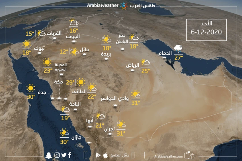 السعودية | حالة الطقس ودرجات الحرارة المتوقعة يوم الأحد 6/12/2020