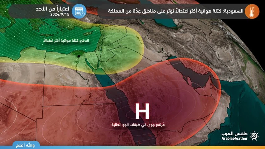 طقس العرب - تُشير أحدث نواتج المُحاكاة الحاسوبية في مركز طقس العرب لحركة الكتل الهوائية توقعات بأن تتأثر العديد من مناطق المملكة السعودية بكتلة هوائية أكثر اعتدالاً و تتسبب بانخفاض على درجات الحرارة لاسيما في ساعات الليل، و ذلك بعد أن استمرت درجات الحرارة في مُستويات أربعينية خلال الأشهر الماضية.