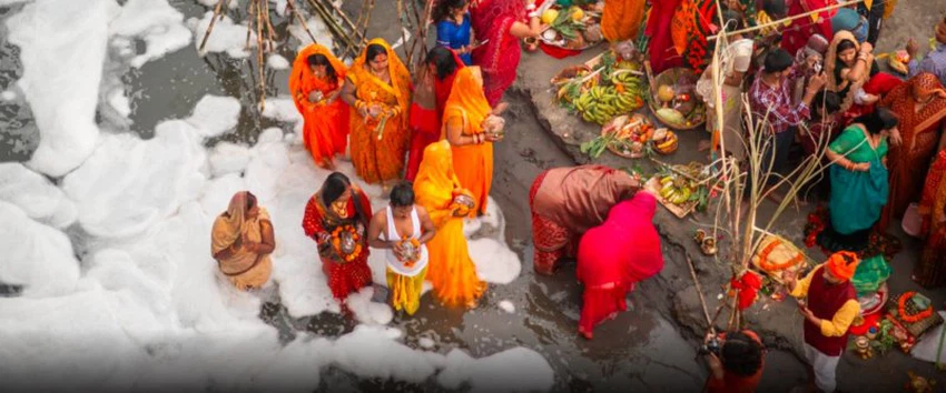 غالبًا ما يُلاحظ المتدينون الهندوس أثناء أداء طقوس دينية في نهر يامونا وهم محاطون بطبقة كثيفة من الرغوة ويشهد كل عام تجمعًا للكثيرين على شواطئ النهر للاحتفال بمهرجان تشاث بوجا، المخصص لإله الشمس لورد سوريا، حيث يخوض البعض في الرغوة للقيام بالاستحمام وأداء الصلوات.