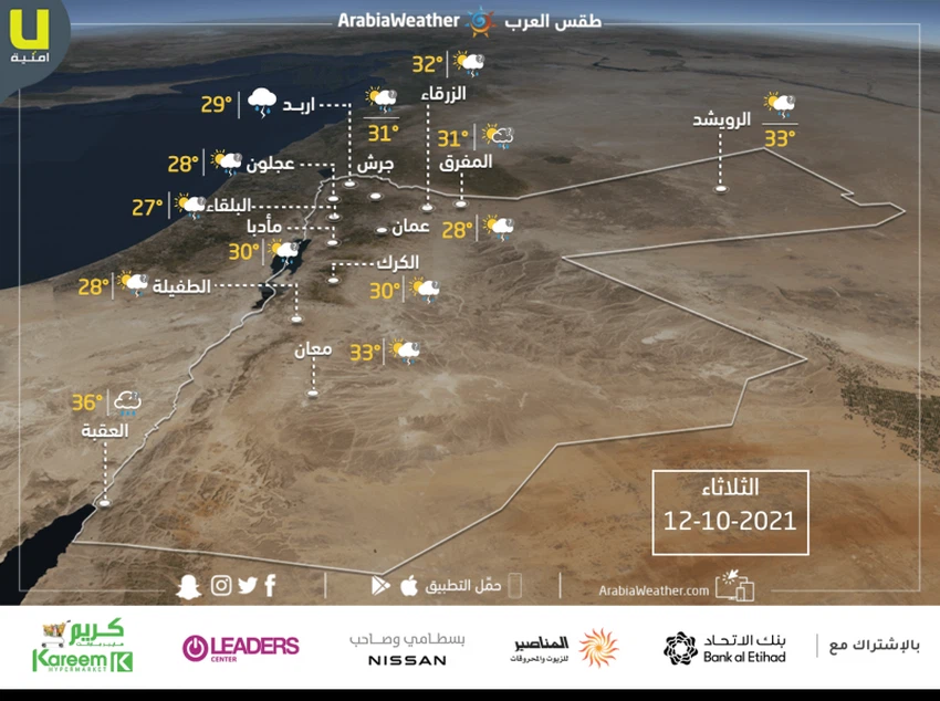 حالة الطقس ودرجات الحرارة المتوقعة في الأردن يوم الثلاثاء 12-10-2021