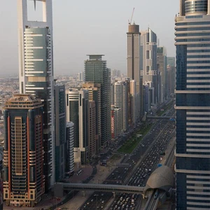 شارع الشيخ زايد هو الطريق الرئيسي المارّ وسط المباني الحديثة لمدينة دبي وهو طريق واسع بـ8 مسارب ومُحاط بأبراج زجاجية واسمنتية شاهقة على مدّ البصر.