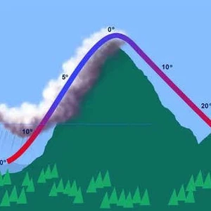 وكعملية رياضية سريعة في علم الأرصاد الجوية، فإن الهواء يبرد درجة مئوية واحدة كلما ارتفعنا 150 متراً عن سطح البحر، لكنه يسخن 1.5 درجة مئوية كلما هبطنا 150 متراً عن سطح البحر. فلو فرضنا أننا في منطقة (أ) ارتفاعها 0 متر عن سطح البحر وحرارة الهواء 40 درجة مئوية، ويوجد جبل ارتفاعه 1000 متر، ونريد أن نعرف كم ستكون درجة حرارة نفس الهواء لو انتقل من النقطة (أ) نحو النقطة (ب) خلف الجبل على ارتفاع 0 متر أيضاً، فإن العملية ستكون كالتالي: 40-(150/1000)*1 + (150/1000)*1.5 = 43.34 درجة مئوية، أي أن درجة حرارة الهواء ارتفعت بمقدار 3.34 درجة مئوية في النقطة (ب) بسبب عملية النزول من الجبل.