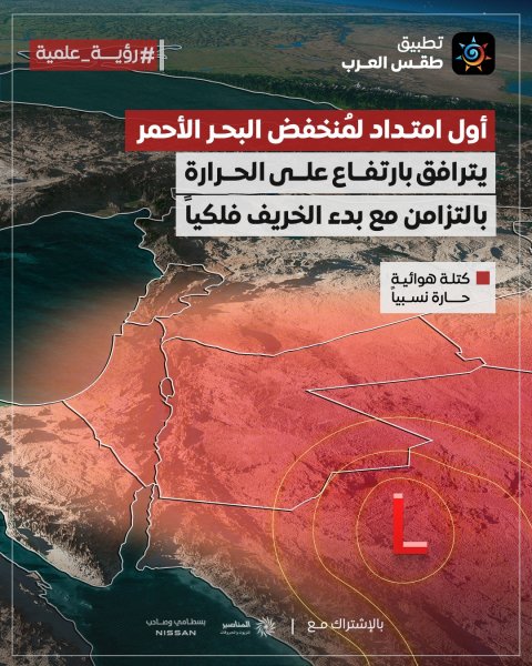 وتتأثر الأردن اعتبارًا من يوم الأحد ويزداد مع يوم الاثنين (أول أيام فصل الخريف وهو الموعد الرسمي للاعتدال الخريفي) ولعدة أيام بأول امتداد لما يُسمى مُنخفض البحر الأحمر، وقال المُختصون في مركز طقس العرب بأن منخفض البحر الأحمر الحراري لا يتبع خصائصه المنخفضات المتوسطية الجبهية، بحيث تكون تأثيراته على المملكة على شكل: