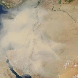 وتوضح الصورة التالية والملتقطة عبر الأقمار الاصطناعية الموجة الغبارية الكثيفة على سائر دول المنطقة والتي قاربت مساحة المناطق المتأثرة بها لنحو مليون كيلو متر مربع.