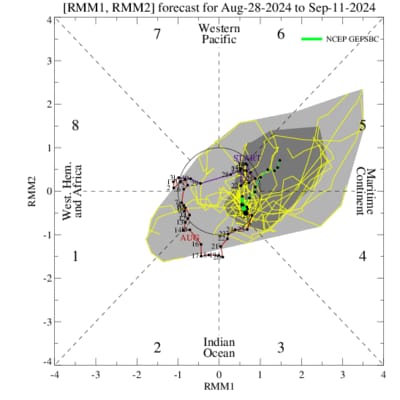 طقس العرب - يراقب المتنبئون الجويون في مركز طقس العرب الإقليمي تزايد تأثر وسط وشمال قارة إفريقيا بالموجة المدارية الرطبة (MJO) التي تتحرك تدريجيًا نحو الغرب، والتي سيرافقها بمشيئة الله اشتداد في وتيرة الأمطار على وسط وشمال القارة الإفريقية، بما فيها الصحراء الكبرى الإفريقية التي تعد من أكثر مناطق العالم جفافاً. ستطال الأمطار العديد من الدول العربية، بما فيها السودان، مما يزيد من معاناة السكان في ظل ازدياد شدة وخطورة الفيضانات.