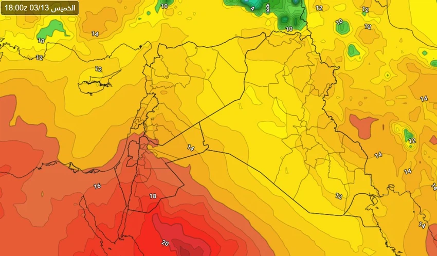 ويتحول الطقس ليصبح ربيعياً لطيفاً بوجه عام، وحاراً نسبياً في الأغوار والبحر الميت والعقبة ارتفاع على درجات الحرارة الليلة مقارنة مع الليالي السابقةويتوقع أن يلاحظ الارتفاع على درجات الحرارة أيضاً خلال فترة المساء والليل، حيث يتوقع أن ترتفع درجات الحرارة الليلة مقارنة مع الليالي السابقة خاصة مع نهاية الأسبوع مع بقاء الأجواء باردة عموماً خاصة فترة الفجر والصباح الباكر