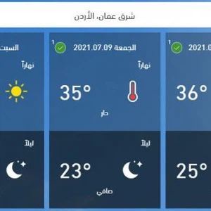 وفي التفاصيل، ترتفع درجات الحرارة يوم الخميس، لتُصبح أعلى من مُعدلاتها نسبةً لمثل هذا الوقت من العام بحدود 2-4 درجات مئوية، حيث تُلامس درجات الحرارة حاجز 35-36 مئوية في أحياء العاصمة عمّان، لتسود أجواء صيفية حارة نسبياً في المرتفعات الجبلية، بينما تكون شديدة الحرارة في الاغوار والبحر الميت والعقبة بالإضافة للمناطق الصحراوية، وتكون الرياح غربية الى شمالية غربية معتدلة السرعة، تنشط بعد الظهر قد تعمل على اثارة بعض من الغبار الخفيف في البادية الشرقية.
