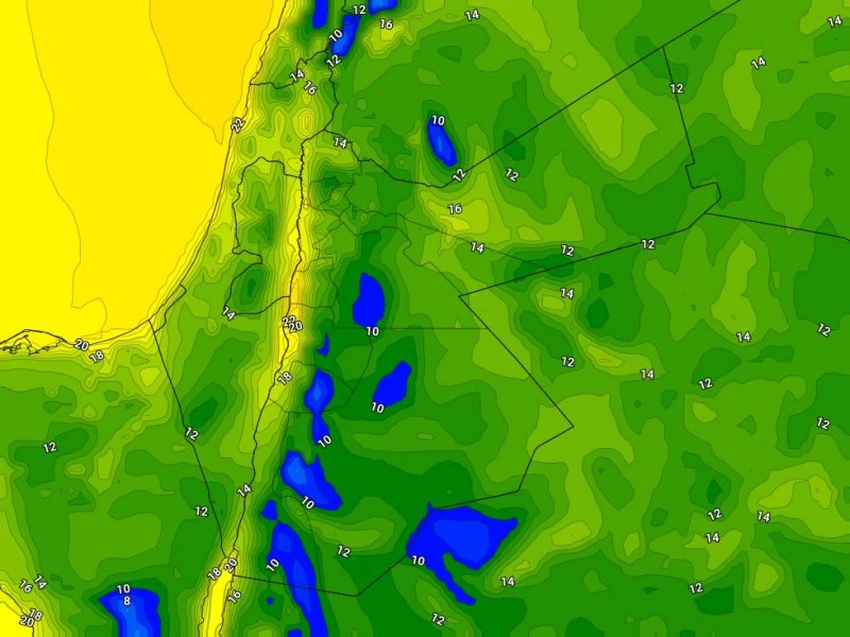 حيث ستكون درجات الحرارة دون ال10 درجات في جبال الشراه، حول ال10 درجات في سهول عمان الشرقية وجبال رم، واجزاء من معان والبادية الشرقية.