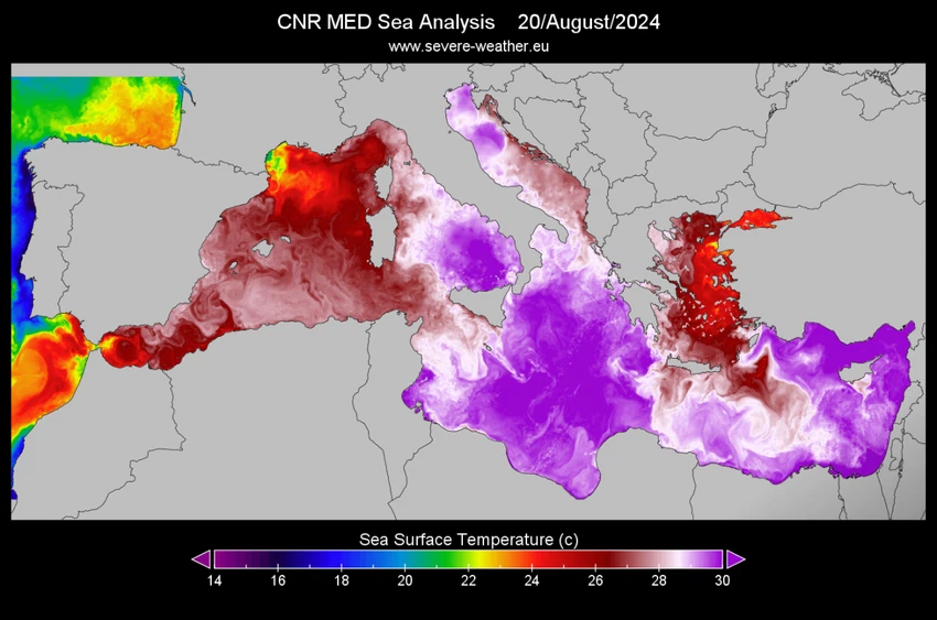 وعلى الرغم من اقترابنا من بداية فصل الخريف فلكياً، لا تزال مياه البحر دافئة للغاية في جميع أنحاء أوروبا، حيث تشير الخرائط الخاصة بدرجة حرارة البحار إلى تسجيل درجات الحرارة دافئة بشكل ملحوظ وأعلى بحوالي 4-6 درجات مئوية من المتوسط، فوق منطقة بحر البلطيق والبحر الأبيض المتوسط، وتشمل البحر الليغوري والتيراني والبحر الأدرياتيكي والبحر الأيوني وبحر إيجة.