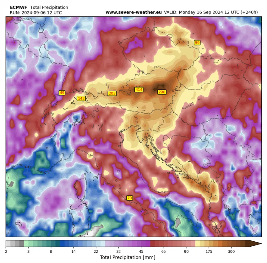 ويتوقع بمشيئة الله ، ونتيجة لتشكل مرتفع جوي فوق الأطلسي، أن تندفع من شمال غرب أوروبا كتلة هوائية باردة نهاية الأسبوع الحالي نحو جنوب أوروبا، يتشكل على إثرها منخفض جوي عميق وعاصفة مطرية ستجلب المزيد من الأمطار إلى شمال إيطاليا والنمسا وسلوفينيا وكرواتيا، حيث تشير التوقعات إلى إجمالي أمطار متوقع على مدى الأيام العشرة المقبلة يتراوح ما بين 200 و400 ملم.