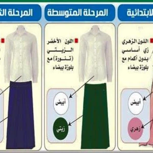 وذكر التعميم التفاصيل المتعلقة بتصميم ولون الزي المدرسي المعتمد للمراحل التعليمية؛ حيث سيكون زي المرحلة الثانوية اللون الكحلي للتنورة وبلوزة بيضاء، بينما سيكون للمرحلة المتوسطة تنورة باللون الأخضر الزيتي وبلوزة بيضاء، وخُصص اللون الزهري للمرحلة الابتدائية (زي أساسي من دون أكمام) وبلوزة بيضاء.