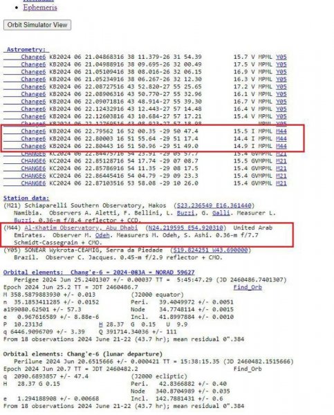 وقد كان أول مرصد يتمكن من تصوير المسبار هو "المرصد الجنوبي لأبحاث الكويكبات القريبة من الأرض" الواقع في البرازيل، ومن ثم كان مرصد الختم هو ثاني مرصد في العالم يتمكن من تصوير المسبار، وبعد الرصد الإمارات بحوالي ساعة تمكن مرصد ثالث في ناميبيا من تصوير المسبار أيضا، ومن خلال الأرصاد الثلاثة أمكن تحديد مدار المسبار بدقة.