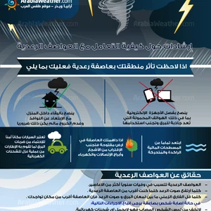 كما وتجدُر الإشارة إلى خطورة العواصف الرعدية التي من المتوقع ان تكون قوية في بعض المناطق وننصح باتباع الإرشادات التالية عند حدوث العواصف الرعدية