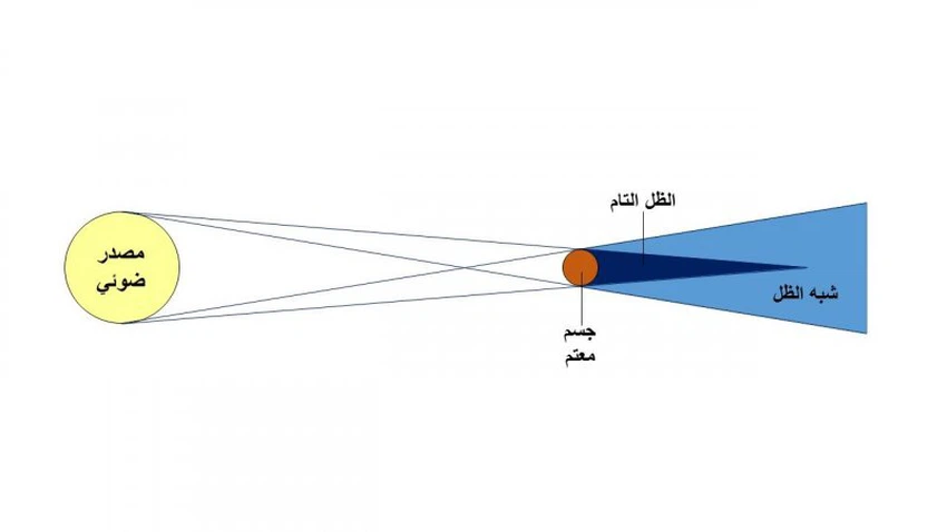 ولفهم كيفية حدوث الكسوف والخسوف لا بد من معرفة مفهومي الظل التام وشبه الظل، فمن المعروف أن الضوء في الأحوال العادية يسير في خطوط مستقيمة. ولو كان هناك مصدر للضوء، فإن الظل shadow ينشأ في المنطقة التي يحتجب فيها الضوء الصادر عن هذا المصدر الضوئي خلف جسم ما (غير مضيء). وفي حالة المصادر الضوئية الممتدة—كقرص الشمس، ينقسم الظل الذي تنتجه هذه المصادر إلى منطقتين رئيسيتين: منطقة الظل التام umbra التي يحتجب فيها المصدر الضوئي تماماً بالنسبة للناظر الموجود هناك، ومنطقة شبه الظل penumbra التي يحتجب فيها جزء من المصدر الضوئي ويبقى جزء منه مرئياً