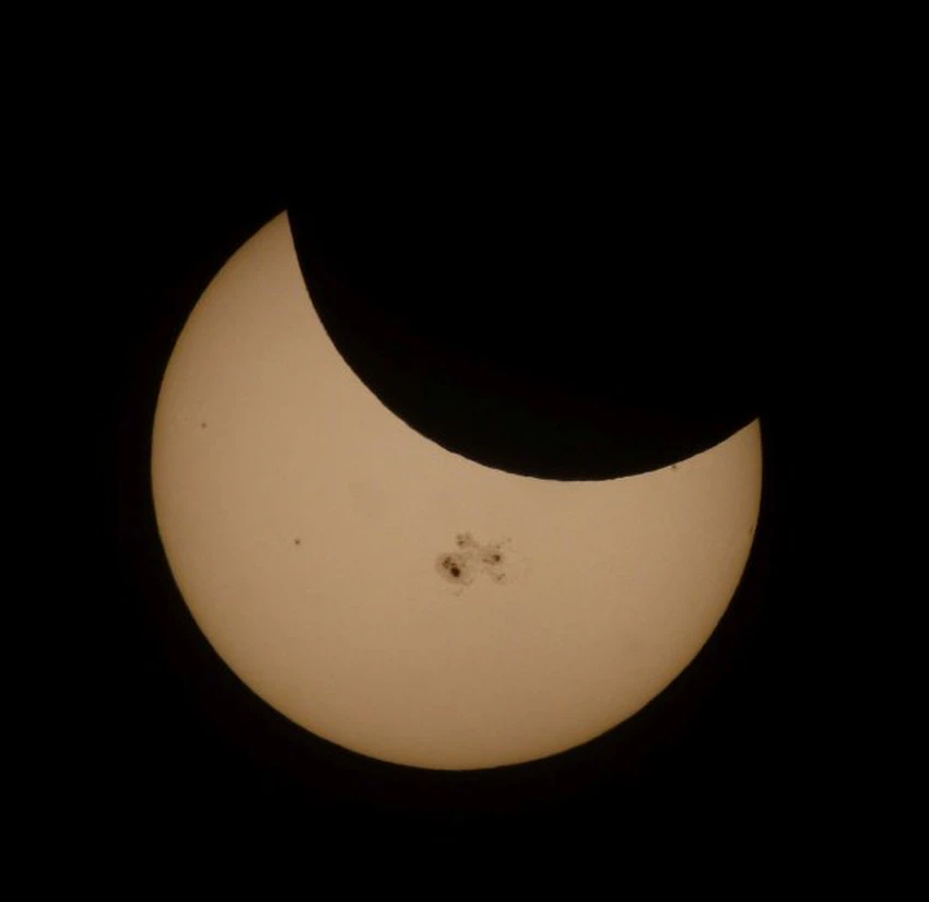 وبين "صابات" أن الكسوف الشمسي يحدث أثناء حركة الأرض المدارية حول الشمس والتي تتزامن مع حركة القمر المدارية حول الأرض، يتصادف أحياناً أن تقع الشمس والقمر والأرض على استقامة واحدة تماماً، بحيث يقع القمر بين الجرمين الآخرين. في هذه الحالة (التي هي متزامنة مع مرحلة المحاق)، يسقط ظل القمر على الأرض، فيحدث الكسوف الشمسي. ويكون الكسوف كلياًtotal solar eclipse (أي أن قرص الشمس يحتجب تماماً عن الرؤية) في تلك الأماكن من الأرض التي تقع في منطقة الظل التام للقمر.