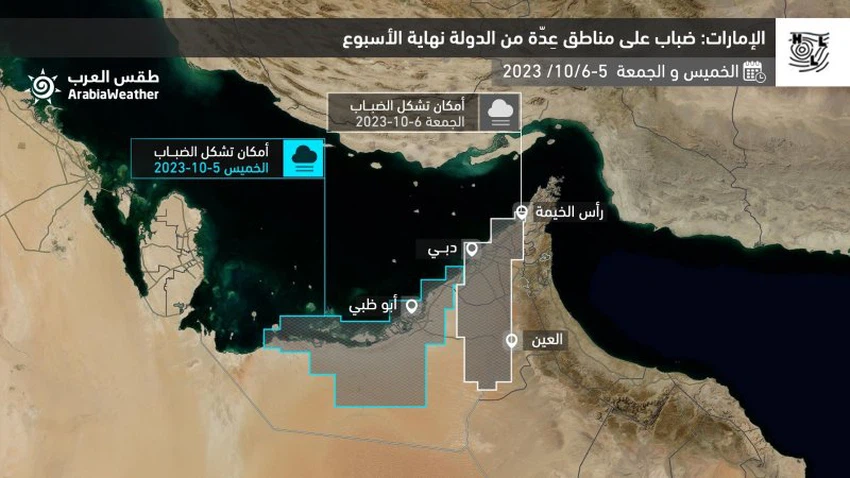 و يتسبب ذات المُرتفع الجوي في طبقات الجو المُختلفة بارتفاع أيضاً تشكل الضباب و الضباب الخفيف على أجزاء عديدة من الدولة اليومين القادمين، و كذلك الأجزاء الساحلية المُطلة على بحر العرب في عُمان.