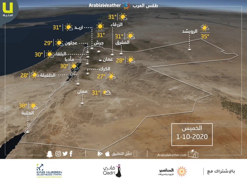 درجة الحرارة العظمى المتوقعة في المفرق: °31