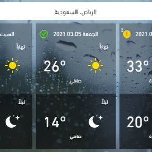 طقس العرب - سنان خلف - تتأثر العاصمة الرياض يوم الخميس بارتفاع كبير ولافت على درجات الحرارة، ويُثتوقع أن تُسجل الرياض درجة حرارة عُظمى تصل إلى 33 درجة مئوية، كنتيجة لتأثير لمنخفض البحر الأحمر على المنطقة