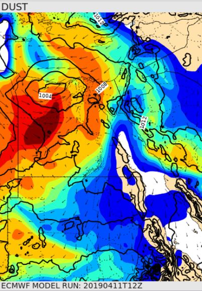 طقس العرب - احمدسالم - طقس السبت :  يُتوقع ان يتأثر شمال مصر بمنخفض حراري خماسيني قادماً غرباً من ليبيا حيثُ يعمل على هبوب رياح جنوبية غربية إلى جنوبية نشطة السرعة مع هبات حيثُ تعمل على اثارة الغبار والاتربة على شمال غرب البلاد ثم تنتقل الاحتمالات تدريجاً إلى أجزاء من محافظات القاهرة والدلتا والاسكندرية ثم اخيراً نحو أجزاء من مدن القناة  خاصة المناطق الصحراوية.