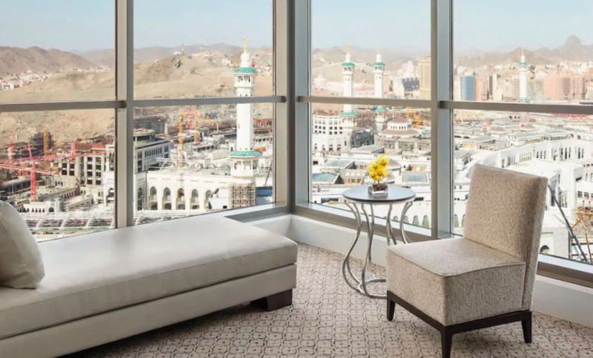 يعد فندق رافلز مكة بالاس يعد من بين أفضل فنادق الخمس نجوم في مكة المكرمة، وهو يوفر تجربة سفر فاخرة وراقية للضيوف الذين يبحثون عن الفخامة، ويقع الفندق على بُعد خطوات قليلة من المسجد الحرام ويضم 214 جناحًا، مما يتيح للنزلاء إطلالات بانورامية على المسجد الحرام.